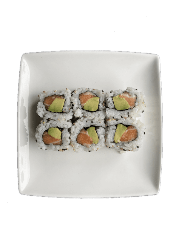 Saumon et avocat dans un roulé croustillant de graines de sésame.