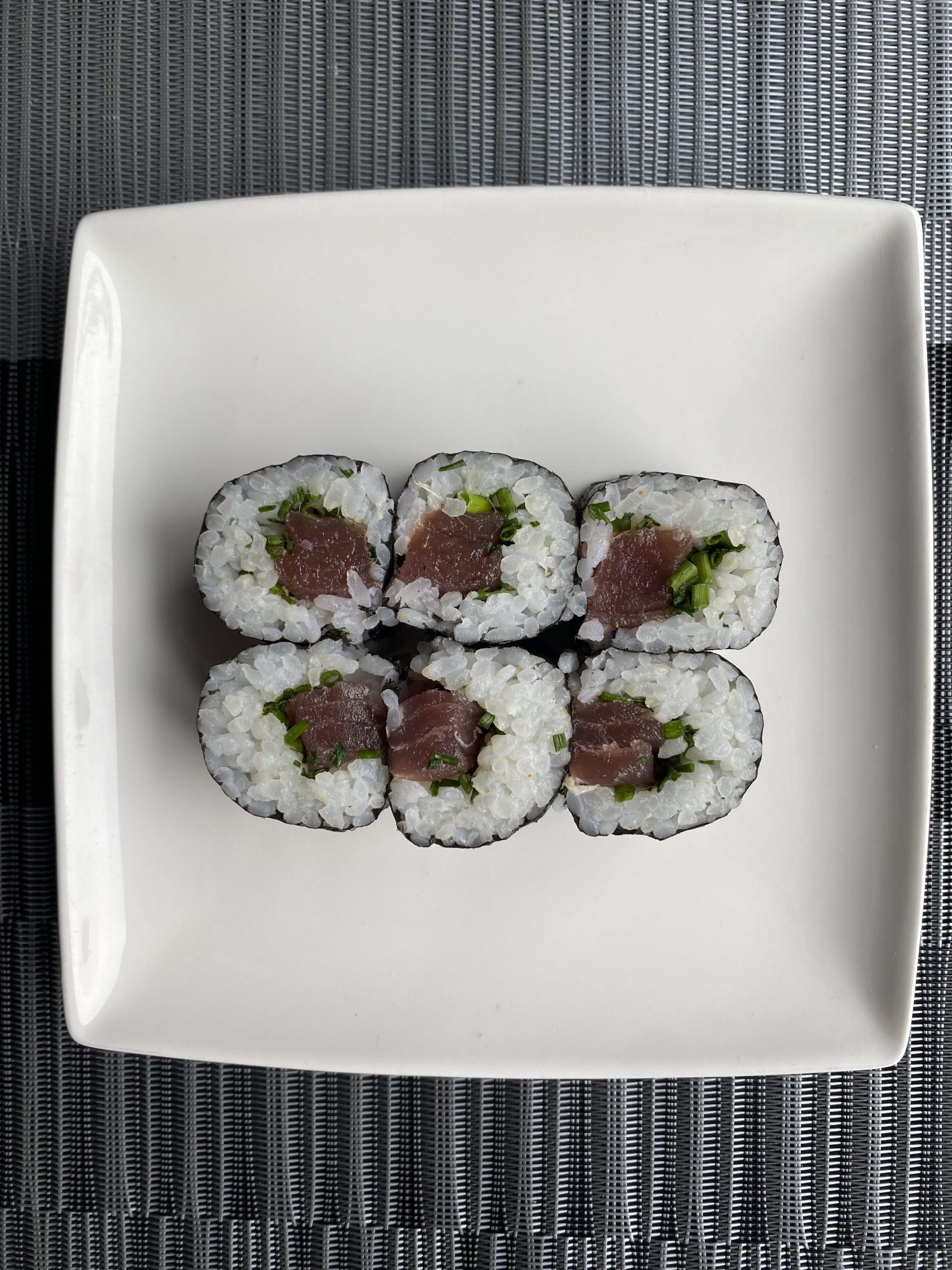 Thon rouge et ciboulette, simplicité et élégance dans un maki.
